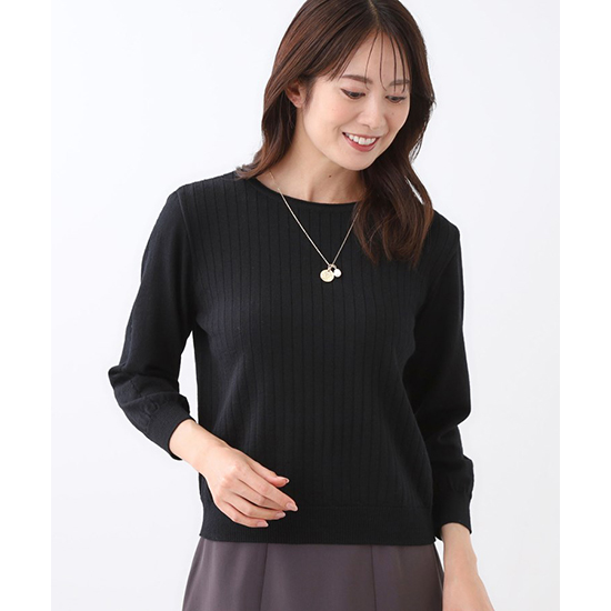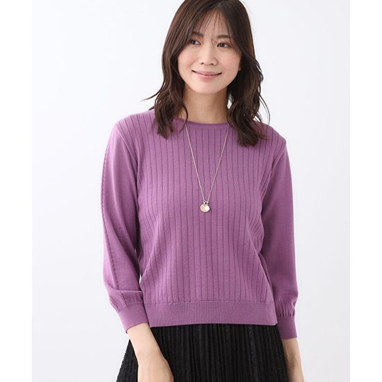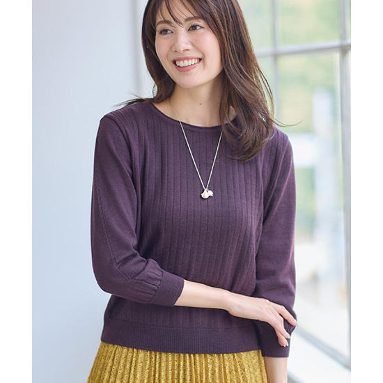 【WEB先行カラーあり/インナーにおすすめ◎/アンサンブル可】すっきり見え縦編み柄ニット