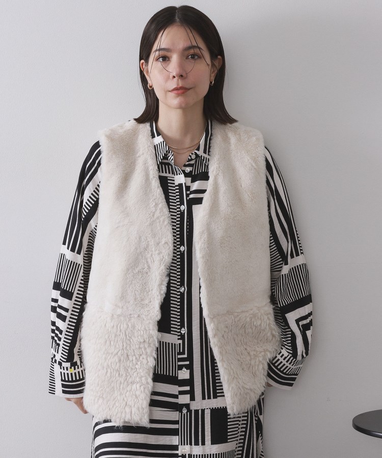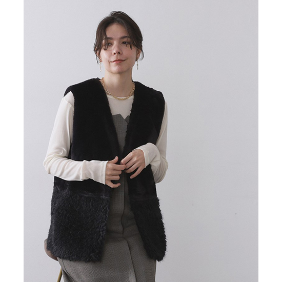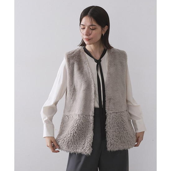 フェイクファー×フェイクボアドッキングジレ【洗濯機OK】