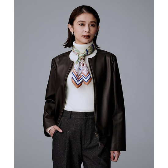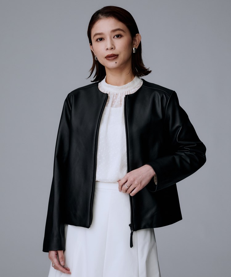 【デザイン】ボクシーなシルエットのシンプルなラムレザージャケット。ハンドステッチ風なディティールとファスナー引手には共布テープを用いて、シンプルな中にも細部に拘りました。後ろにはベルト切り替えデザインをプラスして、ブルゾン風に仕上げています。【素材感】子羊の皮を使用し、毛や汚れを徹底的に取り除きクロム鞣しにし、しなやかで上品な光沢感のある革に仕立てています。非常に柔らかくしっとりとしており、手触りから良質感を得られる商品になります。【着こなしポイント】ハードな印象になりやすいレザージャケットは、女性らしい印象のスカートやワンピース合わせがおすすめです。着丈が短めなのでワイドパンツとの相性も◎。飽きずに長く愛用していただきやすい、洗練されたベーシックなデザインにしています。【仕様】・ポケット数:横×2・裏地あり※洗濯表示・注意事項等は、本製品でご確認ください。※照明の関係により、実際よりも色味が違って見える場合があります。また、パソコン・スマートフォンなどの環境により、若干製品と画像のカラーが異なる場合もございます。