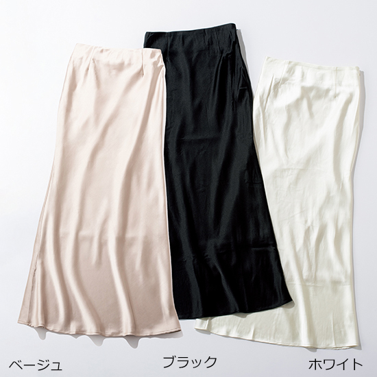・トップスを選ばない一年中着られるサテンスカート