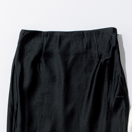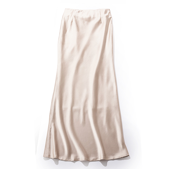 綺麗なマーメイドラインを描くサテンマキシスカート