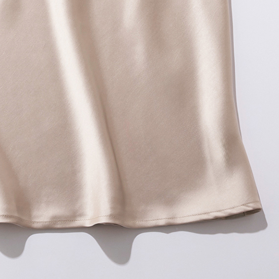 サテンならではの光沢感が上品で、きれいめな印象に仕上がります。