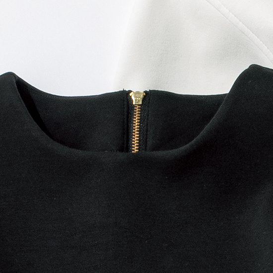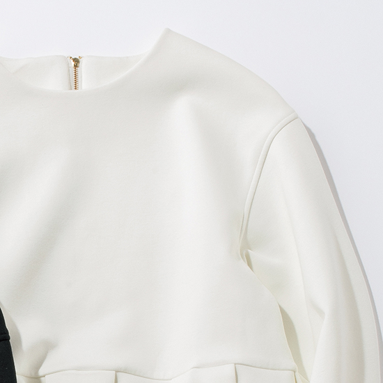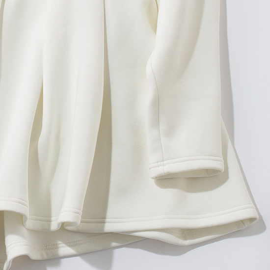 シワになりにくいポンチ素材とふんわり広がるシルエットがなんとも上品。