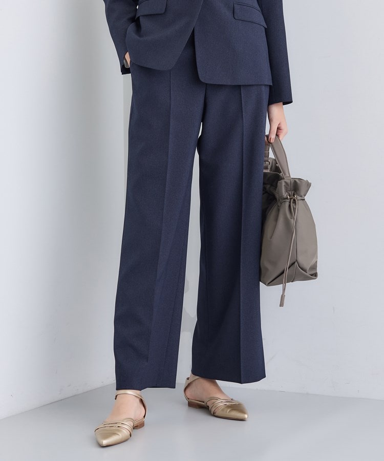 【洗える/通勤/スーツ】メランジストレッチ ワイドパンツ
