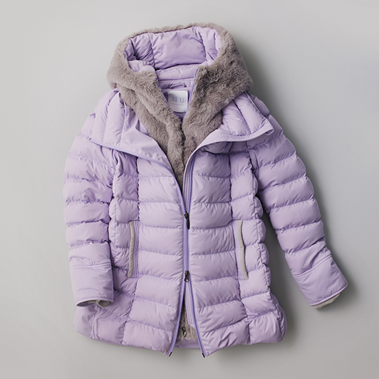 ジップの開閉でファーの見せ方を調整できます。STORY別注カラーのパープルは、派手<br />