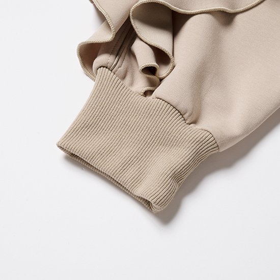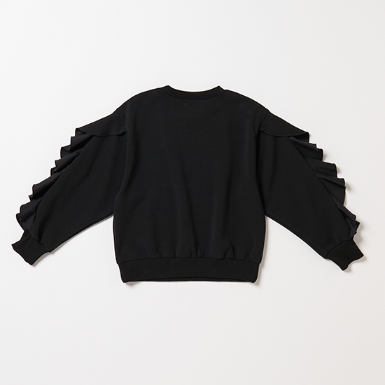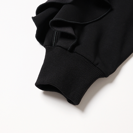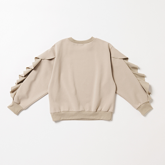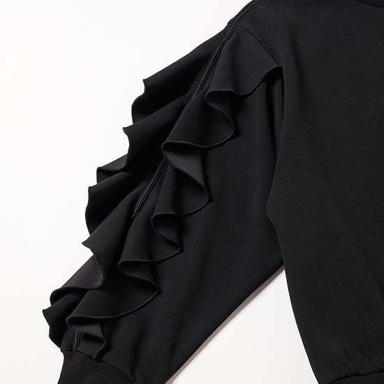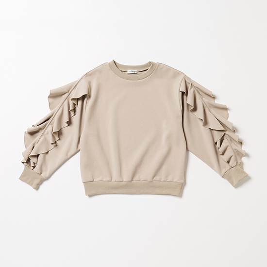 スウェット=カジュアルの概念を覆す、袖のフリルが主役の一枚。