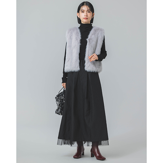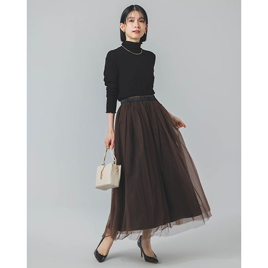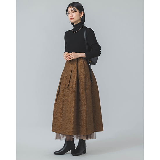 "[RAW FUDGE]【リバーシブル・洗える】ジャガード×チュール タックスカート"