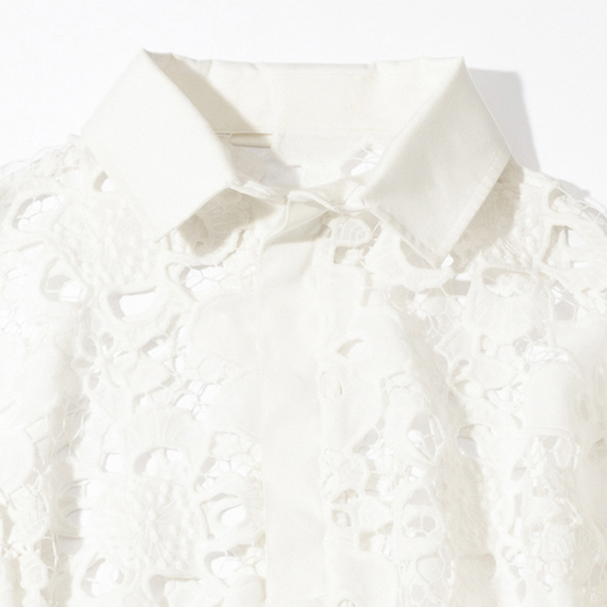 ケミカルレースを贅沢に全面に使用したラガーシャツ。