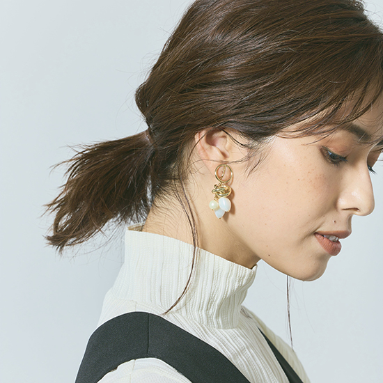 エレガントな雰囲気にメタルのパーツでトレンド感をプラスしたアクセサリー