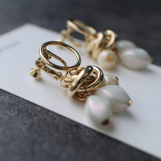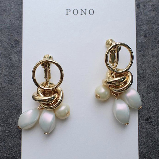 イヤリングもピタッと耳元に寄り添うイヤリングタイプです。