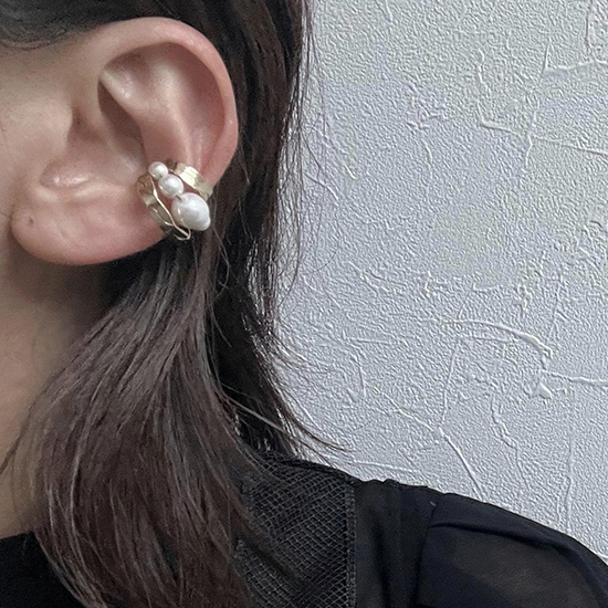 横顔をグッと印象づけてくれるパールをあしらったイヤーカフ