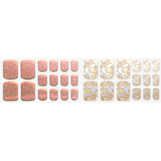 レッドのミラーコートネイルにシェルデザインを一枚にまとめたプレミアムフットネイル。