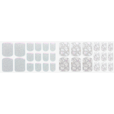 シルバーのミラーコートネイルにシェルデザインを一枚にまとめたプレミアムフットネイル。<br />