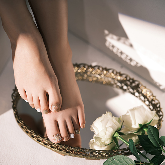 大人気で売れ切れ続出だったメロウメロウベージュのフット用。ベージュ×シェルが爪先を綺麗に演出します。