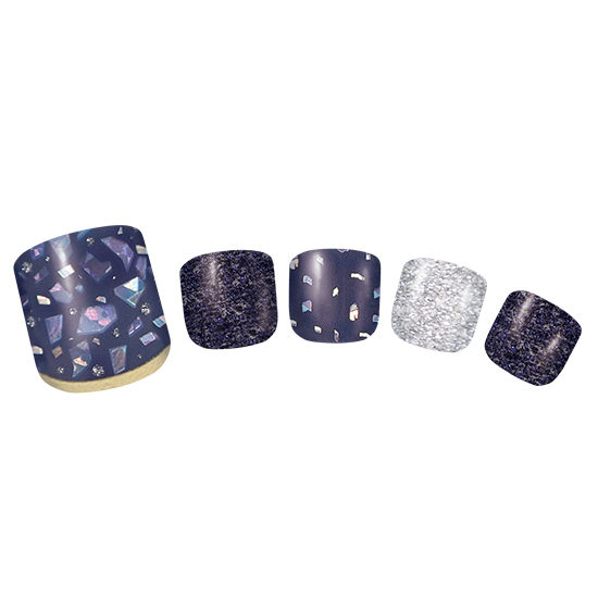 雪の結晶のような自然の輝きをあしらった、夜空の静けさを感じる落ち着いた深みのあるネイビーネイル。<br />