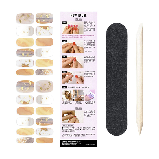 - ネイルシール×24枚、ミニネイルファイル1個、ウッドスティック1本