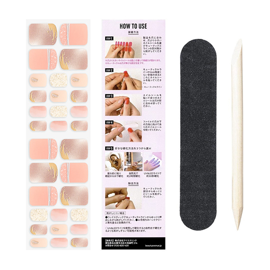 <p><font color=#c31941 size=3>ライトなしでも硬化する生ジェルネイル!<br>2024 Spring&Summer Collection</font><br><br>■□■ 商品詳細 ■□■<br>AVENUEの新感覚ジェルネイルシールに春夏の新作デザインが追加。<br>LEDライト無しでも硬化。簡単!貼って剥がせるジェルネイルシール<br><br>■Straw Gradation(ストローグラデーション)<br>肌馴染みの良いオレンジベージュとゴールドマグネットラメのデザイン。<br>どんなお洋服にもシューズにも合わせやすい王道ベージュネイル。<br><br>■□■ 商品詳細 ■□■<br>ジェルネイルの成分を約35%のみ硬化させた<br>貼って硬化するジェルネイルシール!<br><br>【こんな方におすすめ!】<br>□ 忙しいママの時短ネイルに<br>□ 旅行に行く時も簡単装着<br>□ 美容時間がない女性に<br>□ 突然のパーティーにも<br>□ 週末だけネイルを楽しみたい<br><br>■□■ 使用方法 ■□■<br>【ご使用前に】<br>●爪に油分や水分、汚れが付着しているとシールが剥がれやすくなりますので、爪の表面をキレイに拭き取ってください。<br>●甘皮を処理し、付属のファイルなどで爪の形や表面を整えるとよりキレイに仕上がります。<br>●シートからネイルシールを剥がす際にはシートの外側部分を持って剥がしてください。<br><br>【使用方法】<br>1、製品を爪に合わせ、爪よりも少し小さめのネイルシールをお選びください。<br>2、キューティクルラインと1㎜ほどの余裕のあるところにネイルシールを貼ってください。<br>3、ネイルシールを貼って余りのネイルシールは爪の形に合わせて折ってください。<br> ファイルを利用して、爪の下の方向に向けて余りのネイルシールを削ってください。<br>4、お好みの硬化方法を選んでください。<br>・寝る前に貼り硬化する場合<br>・自然光で硬化する場合:約2時間(自然光の多い室内と室外にて)<br>・UV&LEDライトで硬化する場合:約30秒<br><br>【剥がし方】<br>●ウッドスティックでキューティクルラインからゆっくり押し出しながら剥がしてください。<br>※剥がしにくい場合はお手持ちのハンドクリーム等を塗ると効果的です。<br> UV&LEDライトを使用して硬化すると自然光で硬化するよりも剥がしづらい可能性があります。<br><br>■□■ 使用上のご注意 ■□■<br>●本来の用途目的以外には使用しないでください。<br>●アレルギー体質の方、爪や爪付近の肌に異常があらわれた場合は、直ちにご使用を中止し、皮膚科専門医等にご相談ください。<br>●ネイルシールの持続時間には個人差があります。<br>●長時間の水仕事や入浴をした場合、剥がれやすくなります。<br>●開封後はなるべく早くご使用ください。<br>●長時間、連続しての使用は避けてください(一週間以内がお勧めです。)<br>●乳幼児の手の届かないところに保管してください。<br>●火気の近くや直射日光の強く当たるところ、高温になる場所には置かないでください。<br><br>■□■ 製造国 ■□■<br>韓国製</p>