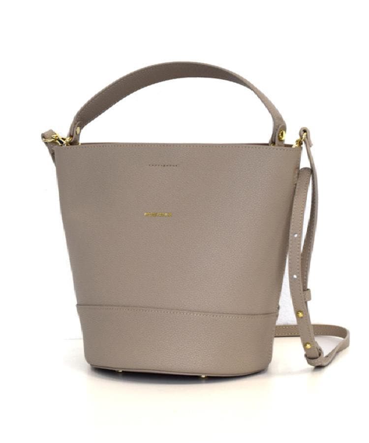 【洗練されたシュリンクスプリットレザーのバケットバッグ。持ちやすさと使い勝手を兼ね備えた一品】●シュリンクレザーの洗練された凹凸で上品さのある素材●すっきりと持ちやすいワンハンドル●物の出し入れがしやすく使いやすい●こだわり一枚革のような仕立てとシュリンクレザー素材で、品の良いバケットバッグ。通勤やお出かけに便利なサイズ感。程よい収納量と内ポケット付きで実用性があります。大きく開く口が特徴のバケツ型バッグ。内側タブのマグネットで開閉でき、口を開けた時にタブが邪魔にならない構造も魅力です。取り外し可能なショルダーストラップで肩掛けもできる2WAY仕様。●素材素材にはスプリットレザーを使用。スプリットレザーとは、革の2層目にあたる部位で、ポリウレタンなど樹脂を表面に塗布し、耐久性を高める加工がプラスされています。本革の副産物として生まれるため、資源の有効活用という点で環境に優しい素材です。また、本革よりも軽いので、BAG全体が持ち運びしやすくなります。※照明の関係により、実際よりも色味が違って見える場合があります。また、パソコン・スマートフォンなどの環境により、若干製品と画像のカラーが異なる場合もございます。