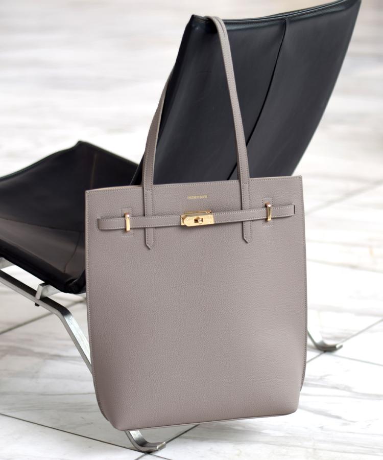 《ベルトと金具のディテールが光る!PCが入るスタイリッシュなトートバッグ》●14インチPCが入るサイズ感●電車やバスでの移動もスマートな縦型トート●どんなシーンでもマッチするシュリンクレザー素材●こだわり通勤に使えるスマートなバッグが欲しい!というスタッフの声から生まれたトート。一枚革のような上品さのある見た目で、服装やシーンを選ばず持てるトートです。タテ型で肩掛けでき、程よいマチの幅で移動時に邪魔にならないため、通勤時のストレスを軽減してくれるアイテム。PCを入れても余裕のある収納量、表側裏面と内側にスマートフォンやカード類が入るポケット付き。金具を開け閉めせずにスマートフォンを取り出せる点もおすすめです。ベルトは金具で留めても、あえてカジュアルに垂らし金具のみ留めても良い仕様です。●素材素材にはスプリットレザーを使用。スプリットレザーとは、革の2層目にあたる部位で、ポリウレタンなど樹脂を表面に塗布し、耐久性を高める加工がプラスされています。本革の副産物として生まれるため、資源の有効活用という点で環境に優しい素材。本革よりも軽いので、バッグ全体が持ち運びしやすくなります。※照明の関係により、実際よりも色味が違って見える場合があります。また、パソコン・スマートフォンなどの環境により、若干製品と画像のカラーが異なる場合もございます。