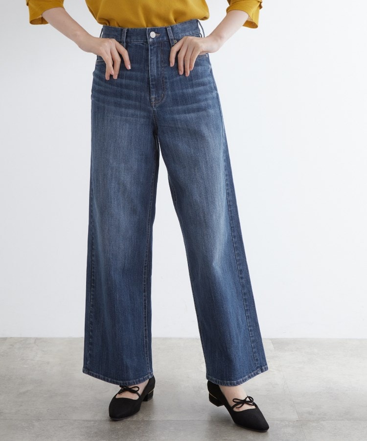 リラックス感と美しさを兼ね備えた、大人のためのバギーデニム【デザイン】抜け感のあるワイドシルエットで、今っぽさと体型カバーを両立できるバギーデニムです。裾に向かってまっすぐ広がるバギーラインは、足元に重心が出て全体バランスが整うシルエット。ヒップや太もも周りはすっきり見せつつ、気になる部分はさりげなくカバー。シンプルなトップスを合わせるだけで、自然とこなれた雰囲気に仕上がります。こだわりの加工感でより本格的な高見えする1本です。【素材】肌なじみのいい綿素材に、形状回復率の高いポリエステルをミックス。伸びて戻るので膝が出にくくきれいな状態をKEEPできるのが嬉しいポイント。さらに微ストレッチが加わることで、しっかりフィットしながらも窮屈感のない穿き心地に。長時間穿いても型崩れしにくく、美しいシルエットをしっかりキープしてくれます。こだわりの加工感と縦スラブの表情ある表面感が高見えし、お値段以上の価値のある1本です。【スタイリング】コンパクトなトップスで女性らしく、オーバーサイズのシャツでメンズライクにも。足元はスニーカーでもヒールでも◎季節に応じて幅広く着回せるボトムです。ワンマイルからお出かけまで、気負わずにおしゃれが決まります。※好みのスタイルバランスや身長に合わせて対応できるようレギュラー丈に+5cmのトールサイズ(21:トールSサイズ/22:トールMサイズ/23:トールLサイズ)も新しくご用意!【仕様】・ポケット数:横×3 後ろ×2・前ファスナー・裏地なし※照明の関係により、実際よりも色味が違って見える場合があります。また、パソコン・スマートフォンなどの環境により、若干製品と画像のカラーが異なる場合もございます。【25AW】