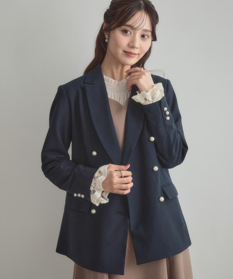 【高見え・きれいめ・通勤】レースカフス パール調釦テーラードジャケット