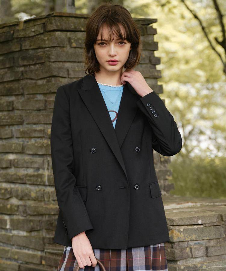 【セットアップ可/オンオフ】ブラックダブルジャケット