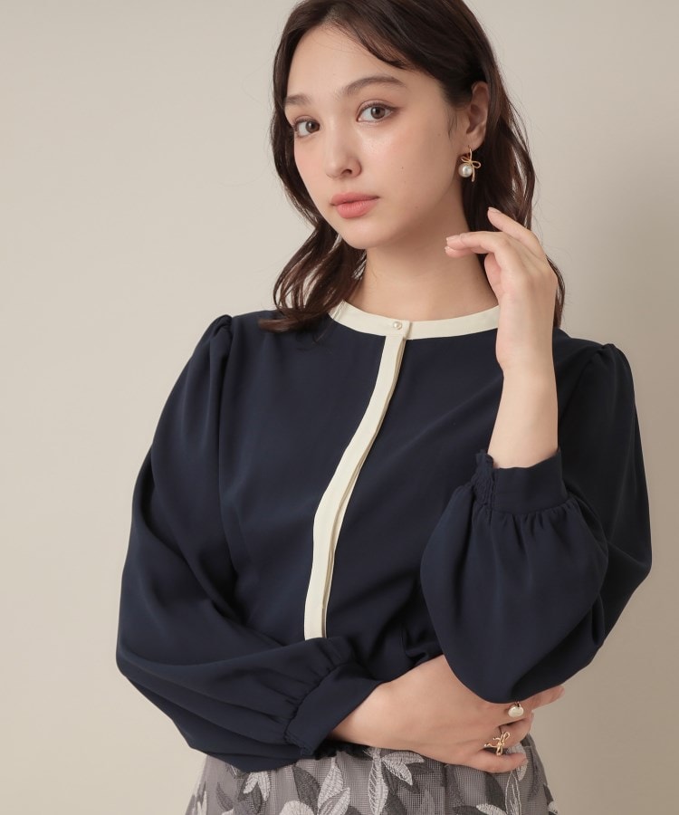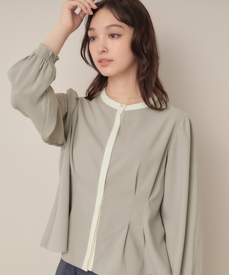 羽織にもなるペプラムシルエットのブラウス~POINT~細い配色ラインが大人可愛いアクセントに◎袖口は半分シャーリングゴムになっていて、袖をまくることもできます比翼仕立ての前開きのシャツ釦にして、ブルゾンのようにも見えるようなデザインです【素材・機能】ぷるんとした程よい肉感のあるバックサテン素材です※照明の関係により、実際よりも色味が違って見える場合があります。また、パソコン・スマートフォンなどの環境により、若干製品と画像のカラーが異なる場合もございます。【スタッフコメント】・saori(153㎝)トレンド感がありながら、大人フェミニンな印象を与えてくれるきれいめブラウスです◎インしても着られるのでスカート派の方にもおすすめです!配色デザインで周りと差がつき、すっきりした印象に◎【25AW NEW ARRIVAL】【25AW NEW COLLECTION】