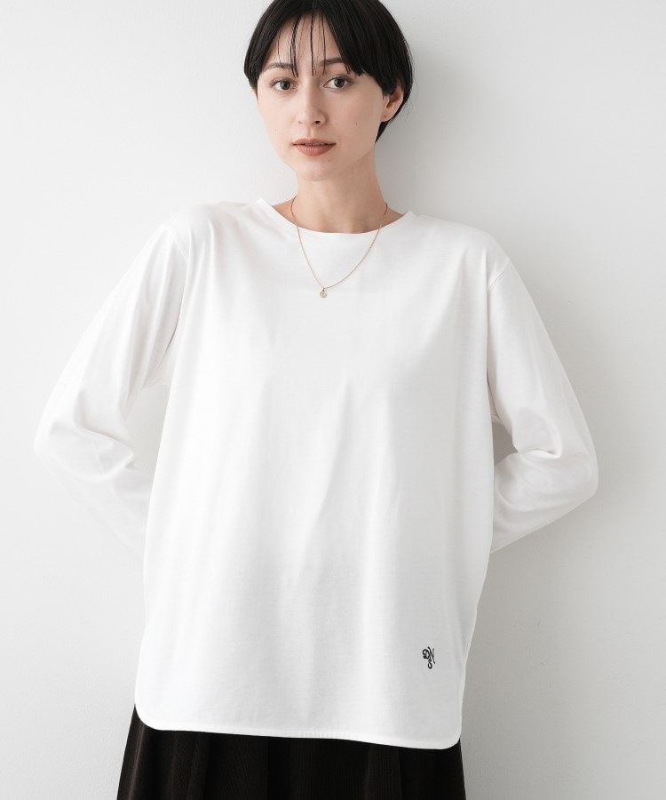 【デザインポイント】CVC天竺を使用したカットソーシリーズ。こちらはクルーネックで、着回し自在。ワンポイント刺繍は控えめなアクセントに。1枚でもインナーでも使えるシンプルロンTです。【スタイリングポイント】デニムでカジュアルに。スカートで合わせで甘めにもぴったり。秋冬はカーディガンやベスト、ニットとレイヤードすると首元レイヤードでこなれた印象に。【素材ポイント】CVC(コットン×ポリエステル)で柔らかく、型崩れしにくい素材です。※照明の関係により、実際よりも色味が違って見える場合があります。また、パソコン・スマートフォンなどの環境により、若干製品と画像のカラーが異なる場合もございます。