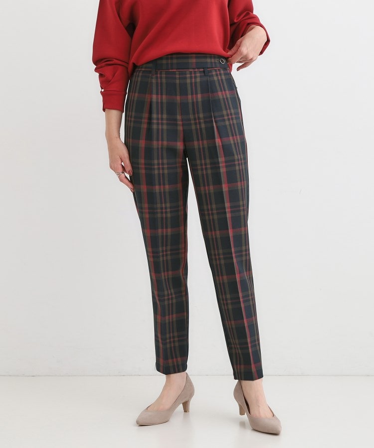 【デザイン】細身のシルエットで、脚のラインをきれいに見せてくれるテーパードパンツ。センタープレスがきちんと感をプラスしつつ、程よく伸びる素材で動きやすさも〇。ウエストは後ろゴム仕様で楽チンだけどスッキリ仕上げで、トップスインもきれいに決まります。クロ無地とチェック柄2色のアソート展開です。【スタイリング】シンプルなシャツやブラウス、ニットを合わせて、きちんとコーデに。ジャケットを羽織ればお仕事着にも対応できる便利アイテムです。【素材】程よいストレッチ感のある素材を使用しています。【仕様】・ポケット数:横×2・ウエスト後ろゴム・裏地なし※照明の関係により、実際よりも色味が違って見える場合があります。また、パソコン・スマートフォンなどの環境により、若干製品と画像のカラーが異なる場合もございます。