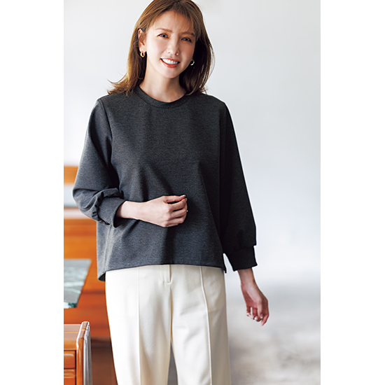 身頃は着心地がいいのにキレイめに見えるポンチ素材を使用しています。