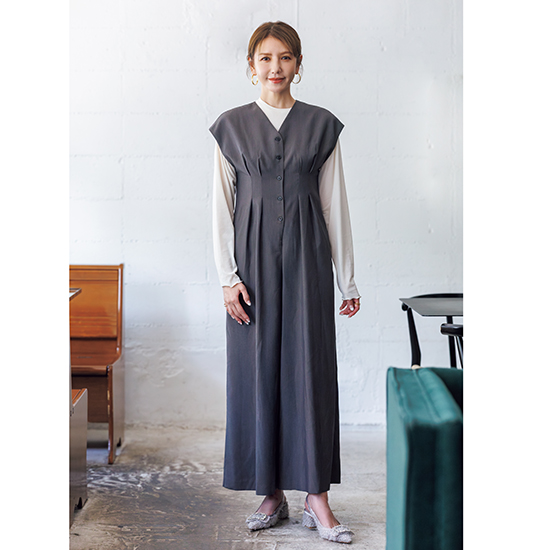 インナーに重ねても、1枚で着ても美シルエットのオールインワン。