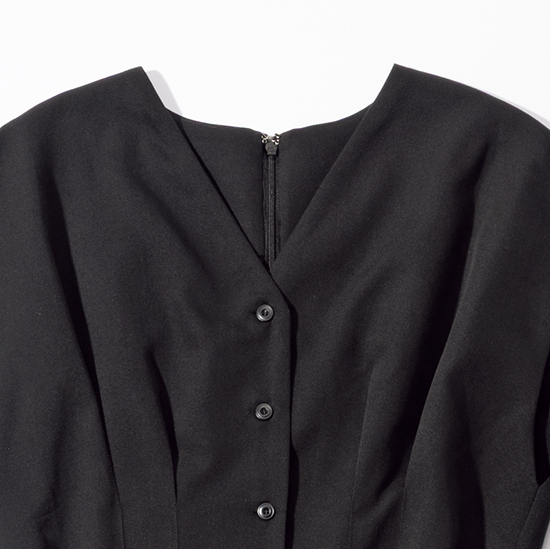 さらにウエストに配したタックが間伸びした感じを防いで、立体的なシルエットに
