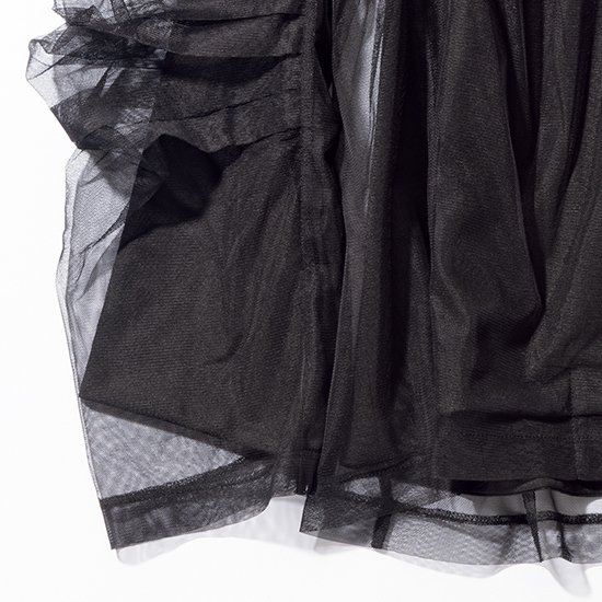 スーツ地×チュールでオシャレを格上げ。