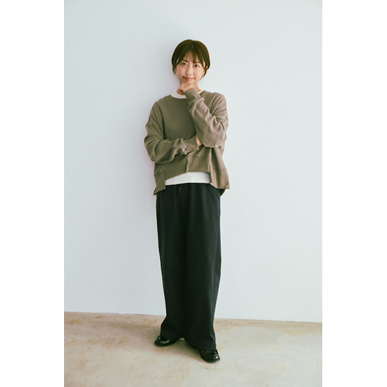 ロンTを重ねることで襟元、お腹フロントをスッキリ見せてくれる優れもの。