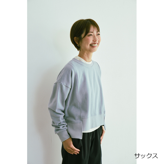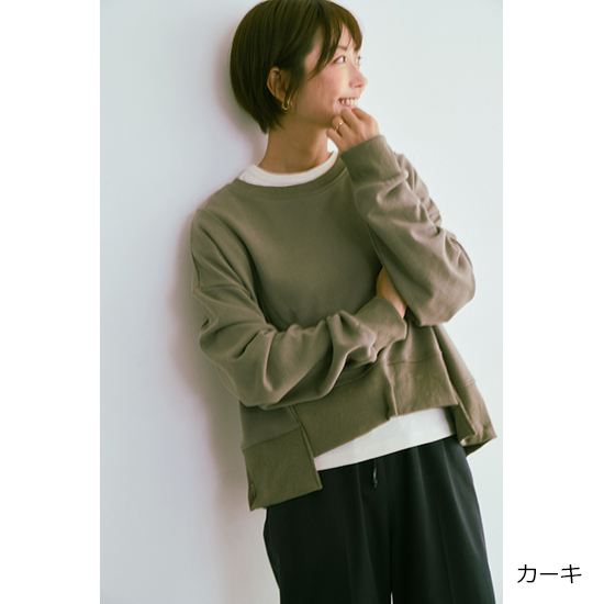 - [38]身幅62cm、肩幅59cm、袖丈45+(リブ)7cm、袖幅20.5cm、裾幅61cm、着丈56.5cm