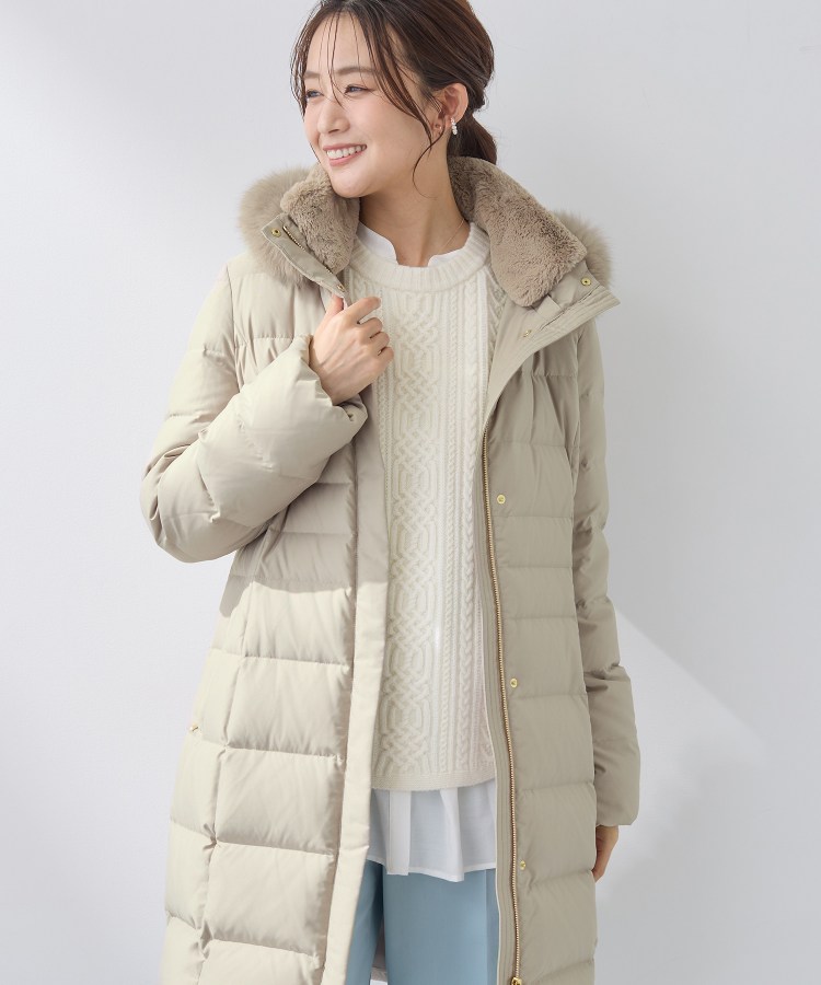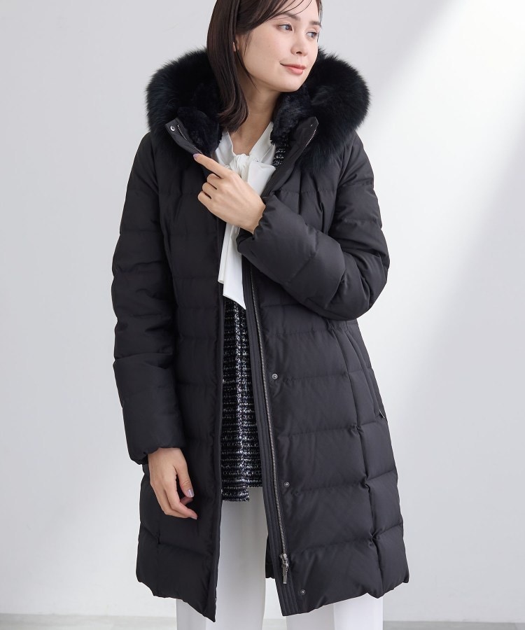 【デザインポイント】毎年好評の定番ロングダウンコートです。国内工場の高度な精製技術により、洗浄度2000mm以上の新毛よりむしろ清潔と言われるリサイクルダウンを使用。フィルパワーが700以上あるので、軽くて保温性に富んでいます。人気の細身のシルエットは継続で、前を開けても着膨れしない拘りの細身のシルエットです。ウォーム感のある内衿エコファー、フード、フードまわりのFOXファーは全て取り外し可能です。【スタイリングポイント】フィットしながらも、スーツの上からも着ることができるゆとり感を腕周り・肩周りに持たせています。ミドルゲージのニットや表情感ある素材との合わせが今年らしくおすすめです。【素材ポイント】表地はリサイクルポリエステル100%を使用し、サスティナブルを考えたINDIVIオリジナルダウン素材になります。撥水性を持たせ深みのある発色性と光沢感が特徴です。【仕様】・ポケット数:横×2・裏地あり※この製品は、抗菌防臭加工をしております。この効果は永久的ではありません。※照明の関係により、実際よりも色味が違って見える場合があります。また、パソコン・スマートフォンなどの環境により、若干製品と画像のカラーが異なる場合もございます。【生地詳細】透け感:なし伸縮性:なし生地の厚み:普通裏地:あり洗濯方法:洗濯不可