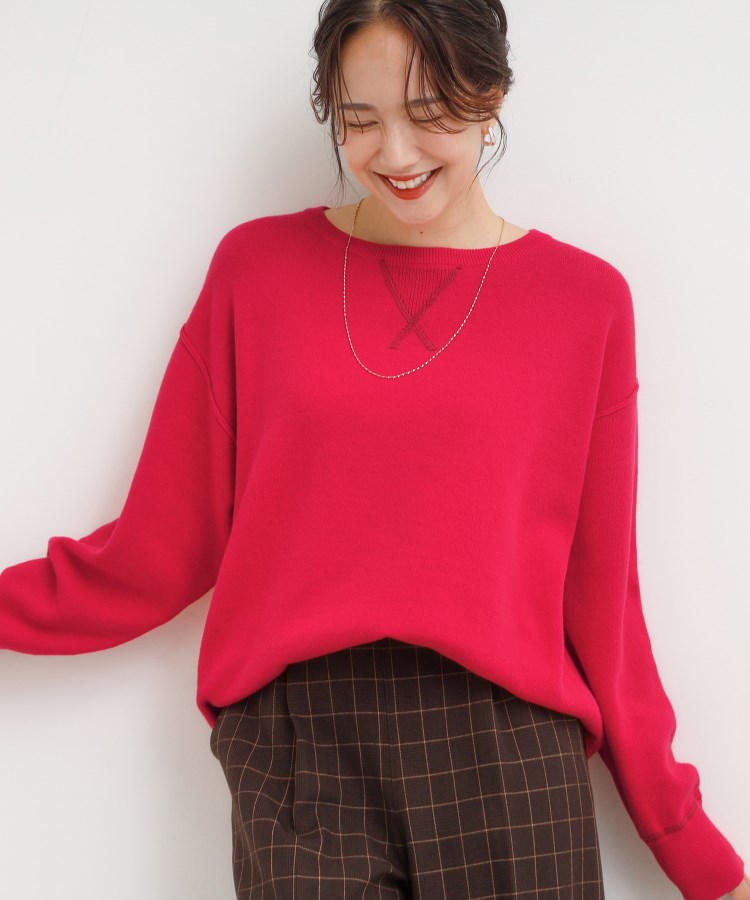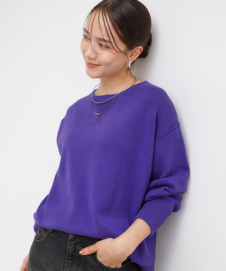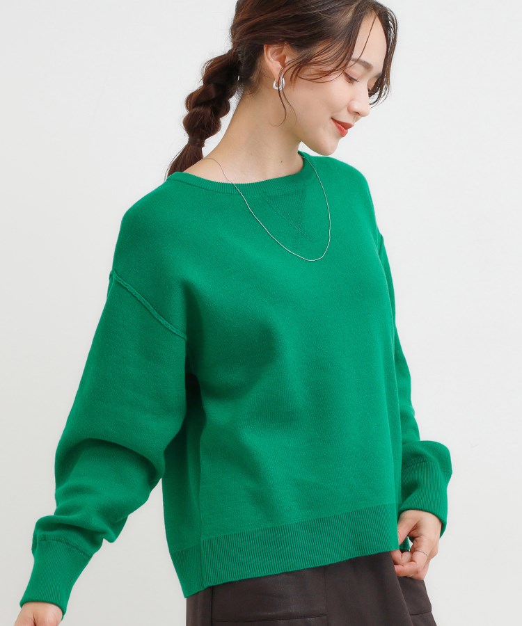 人気のスウェットライクニットにシンプルなモデルが登場大人カジュアルなコーデを叶えるカラーバリエーションにも注目【デザイン】シンプルなデザインにヴィンテージスウェットにあるような「Vガゼット」というディテールを取り入れた、スウェット風ニットです。やわらかく滑らかな心地よい素材感で、上品に見えるので裏毛などスウェット素材よりも大人世代も取り入れやすいアイテムです。リブ部分はしっかりめの仕様にし、シンプルながらもメリハリあるシルエットにしました。※リブ部分について、最初はきつく感じられますが、一度着用すると緩みます。程よいゆるさ、長すぎず短すぎずの着丈でいろんなボトムを組み合わせやすいことも魅力です。鮮やかなアクセントカラーがおすすめです。【スタイリング】スウェットのように楽に着回せるので、デニムなどを合わせたカジュアルコーデがおすすめ。テーパードパンツや落ち感あるワイドパンツ合わせにすると、上品なきれいめカジュアルコーデにも。通勤カジュアルコーデとしてもおすすめです。無地はもちろん、フラワーやチェック柄ボリュームスカート+スニーカー、ブーツと合わせたカジュアルスタイルも大人かわいく。ストライプシャツをレイヤードした着こなしもクリーンな印象でこなれ見えします。【素材】スウェットのような優しい風合いでちくちくしにくい(※)コットンとポリエステルの混合素材を使用。表面はコットンの効果で柔らか、裏面はさらっとしたタッチ。洗濯機洗い可能です。(※)ちくちくの感じ方には個人差があります。※照明の関係により、実際よりも色味が違って見える場合があります。また、パソコン・スマートフォンなどの環境により、若干製品と画像のカラーが異なる場合もございます。