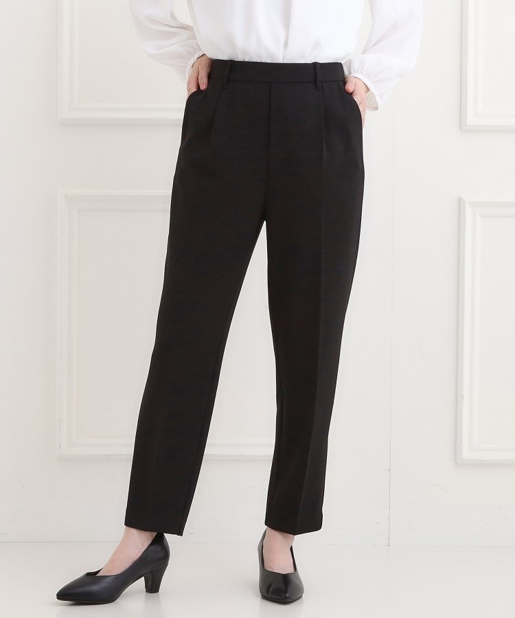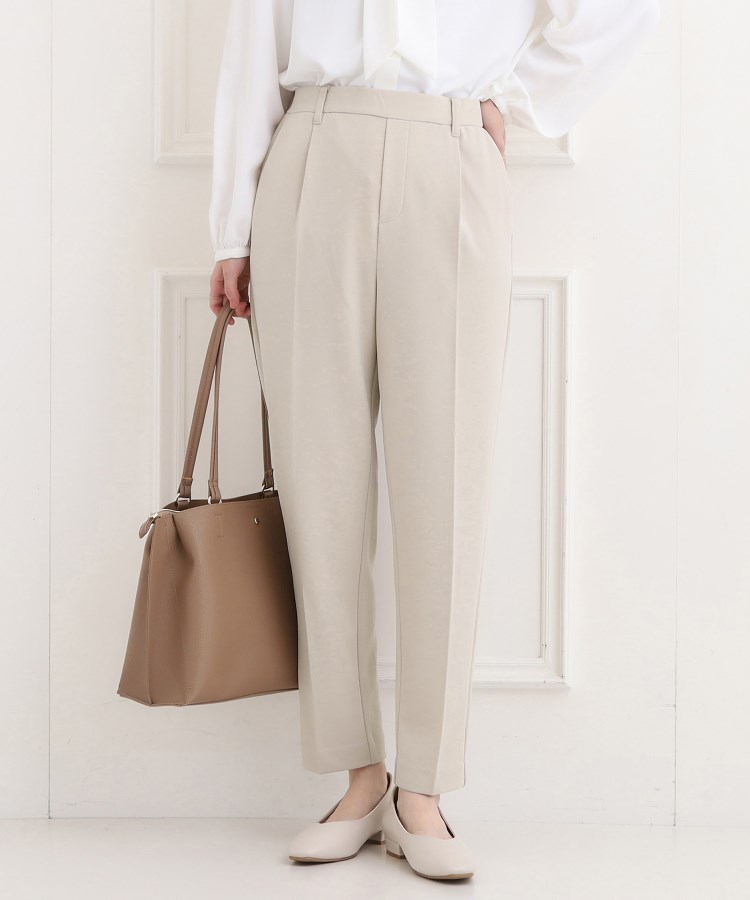 「きちんと」&「楽ちん」 が叶う、動けるセットアップシリーズ。【デザイン】きちんと感がありながら伸縮性に富んだ、楽に穿けるきれいめテーパードパンツ。素材特性を活かし、適度なゆとりがありながらも、脚がきれいにすっきりして見えるテーパードシルエットにこだわりました。ジャージ素材で着心地よく、洗濯機で洗うことができお手入れも楽ちんです。腰周りはゆったりとしていても足首にかけて細くなるシルエットは、美脚効果が期待できる一枚。バックウエストはゴム仕様、前ファスナーなしのプルオンタイプで、締め付け感が少なくサッと穿いていただけます。【スタイリング】素材の表情がきれいでシンプル・ベーシックなデザインなので、どんなトップスにも合わせやすくなっています。入卒などの学校行事、お仕事など様々なシーンで活躍。ジャケットスタイルはもちろん、スウェット、カットソー、Tシャツなどカジュアルなトップスともマッチ。膝下がすっきりしているので、ドルマンなどボリュームトップスやチュニックワンピースなど長めの丈のアイテムにもバランスよく決まります。また、パンプス・スニーカー・サンダル・アンクルブーツなどシューズも選ばず、幅広いシーンで様々なコーディネートを楽しんでいただけます。【素材】上品なシボ感とさらりとした肌触り、ドレープが魅力。ストレッチ性のあるジャージ素材。布帛見えでフォーマル感もありつつ、ジャージならでは膨らみ・軽さでカジュアルスタイルにも相性よい素材感です。セレモニーからデイリーシーンまで幅広く使っていただけます。シワも目立ちにくく、長時間の着用でも外観変化が少ないため、上品できれいな佇まいが続きます。【仕様】・ポケット数:横×2 後ろ×2・ウエスト後ろゴム・裏地なし※同素材で ジャケット(C62‐45300)、ワイドパンツ(C62‐65301)、ジレ(C62‐25300、C62-25301)をお作りしています。※照明の関係により、実際よりも色味が違って見える場合があります。また、パソコン・スマートフォンなどの環境により、若干製品と画像のカラ