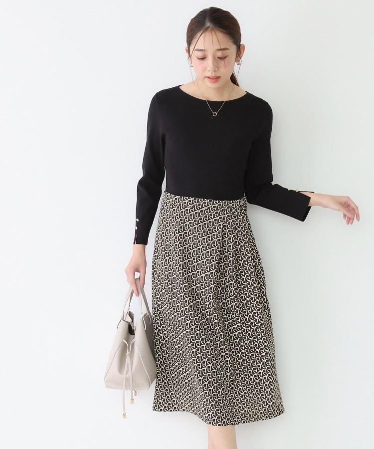 【手洗い可/一枚で決まる】ニット+柄スカートのワンピース