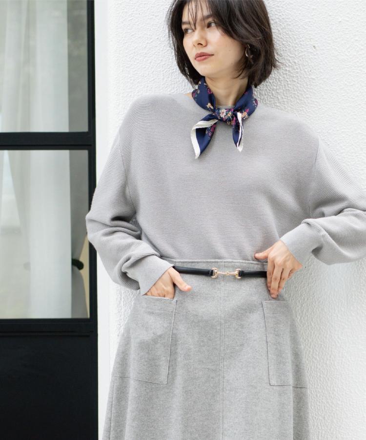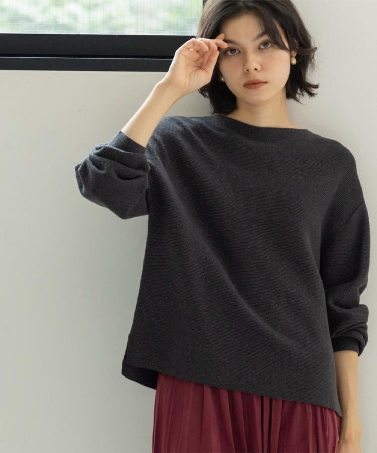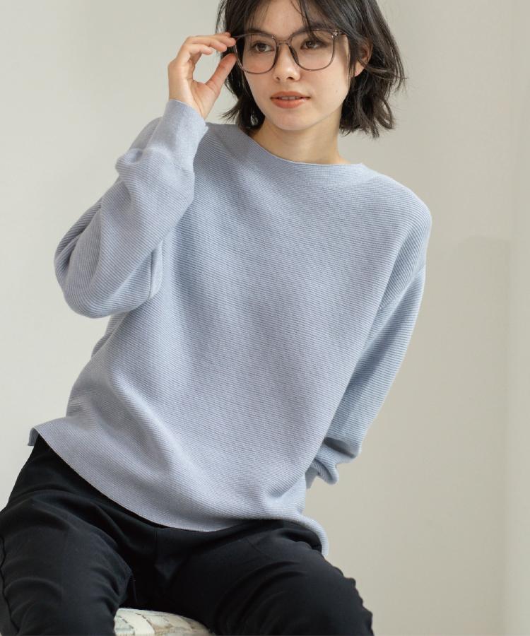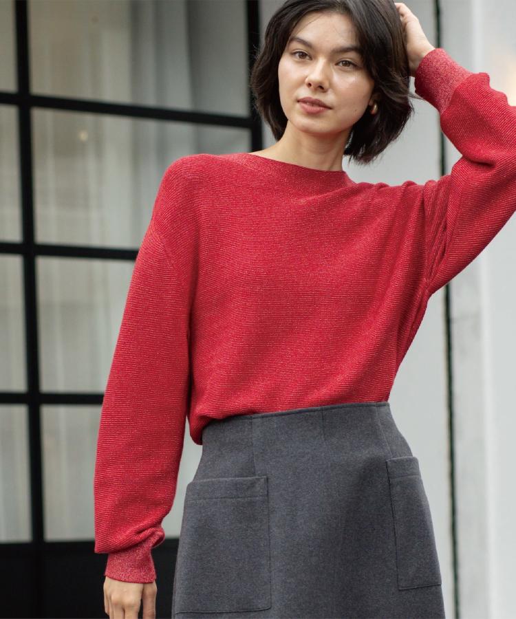 さりげない煌めきが上品なラメ入りの糸を使用デイリーに活躍する、ガーター編みのボートネックニット【デザイン】・ややゆとりを持たせたリラクシーなシルエットのボートネックニット。・すっきりと着られるストレートなボートネックで、首元が開きすぎず品良く着用が可能です。・袖口はリブ仕様になっており、袖捲りもしやすく快適に着られます。・身体に張り付かずさらりと着られる細めのガーター編みを採用。・裾の長さに前後差をつけサイドにスリットをあけているので、パンツにもスカートにも合わせやすいデザインです。【素材】・毛混の混紡素材を使用しており、あたたかみがありつつもきれいめに着用できる素材感。・さりげなく煌めく、上品なラメ入りの糸を使用。・マシンウォッシャブルでお手入れも簡単です。※照明の関係により、実際よりも色味が違って見える場合があります。また、パソコン・スマートフォンなどの環境により、若干製品と画像のカラーが異なる場合もございます。