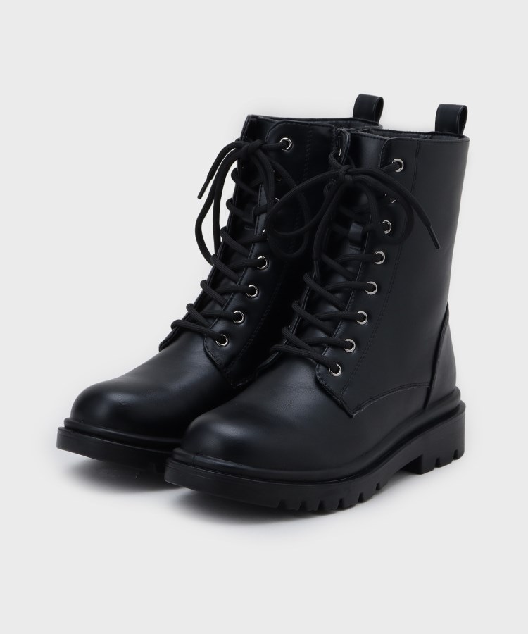 生活防水仕様が嬉しい!レースアップデザインとタンクソールがクールな印象のトレンドショートブーツ・タンクソールを使用した辛めな印象のデザイン・本体は合皮素材を使用・本体内側はジャージ素材を使用して足当たり良好・中敷きは低反発クッション入り・生活防水仕様でちょっとした雨の日などにも役立つアイテムです【デザイン】カジュアルなスタイリングに合わせやすいサイドジップ仕様のレースアップデザインブーツです。軽やかなスカートと合わせてスタイリングのバランスをとったり、トレンドのデニムやカーゴパンツと合わせたスタイリングにもおすすめです。内側にジャージ素材を使用、中敷き部分には低反発素材を使用して履き心地の良さにもこだわりました。■生活防水■トレンド※照明の関係により、実際よりも色味が違って見える場合があります。また、パソコン・スマートフォンなどの環境により、若干製品と画像のカラーが異なる場合もございます。