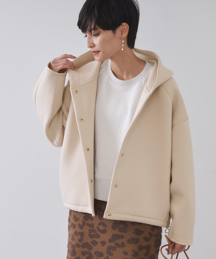 肌寒くなる季節にぴったりなダンボール素材のフーディーアウターが登場。【デザイン】・少し丸みのあるゆったりシルエットのダンボールフーディーアウターです。・前後差のある着丈バランスと、裾にダーツやドローコードが入ったコクーンシルエットが魅力。・顔周りを覆ってくれる絶妙なサイズ感のフードもこだわりポイントです。・スリットポケットも付いているので、アウターとしての機能性も◎。・さっと羽織れて、トレンド感も演出できるデイリー使いにおすすめの一着です。【素材】・ふくらみのある風合いが特徴のダンボール素材を使用。・ご家庭の洗濯機でお手入れが可能なマシンウォッシャブル素材。【仕様】・ポケット数:横×2・裏地なし※照明の関係により、実際よりも色味が違って見える場合があります。また、パソコン・スマートフォンなどの環境により、若干製品と画像のカラーが異なる場合もございます。