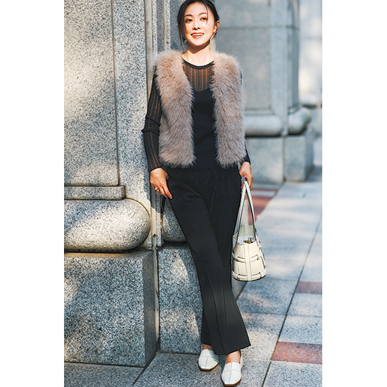 ・ファーにラメが施されたラグジュアリーなジレ。