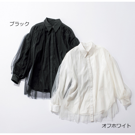 重ねたチュールは生地をふんだんに使いながらもドロップショルダーや落ち感で<br />
