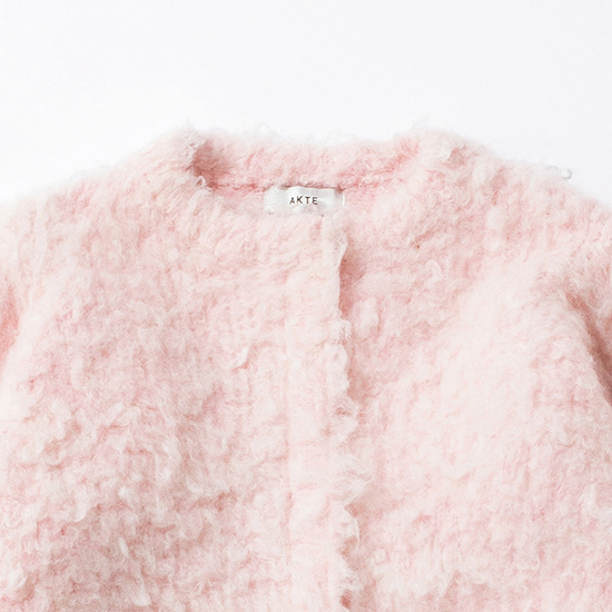 毛足の長い束感のある糸を使用した、柔らかなニットカーディガン。