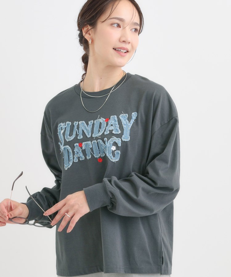 【デザイン】刺繍を施したアソートロンT。人気のハート刺繍、秋らしいデニムロゴ刺繍、ベーシックに合わせやすい大人なフォトプリント刺繍の3種類をアソートで展開しています。ゆったりとしたシルエットで幅広い方に着こなして頂けます。お尻も隠れ体型カバーにもオススメです◎1枚で着映える商品ですので、ボトムスを選ばず幅広いシーンで活躍できます。【スタイリング】1枚でも着映えますので、カジュアルにデニム合わせやスウェットパンツ合わせのスタイルなどがオススメです。大人らしくベロアのナロースカートと合わせたスタイルも素敵です。デニムシャツや、デニムサロペットのインナーとしての着用もオススメです。【素材】やわらかなカットソー素材です。※照明の関係により、実際よりも色味が違って見える場合があります。また、パソコン・スマートフォンなどの環境により、若干製品と画像のカラーが異なる場合もございます。