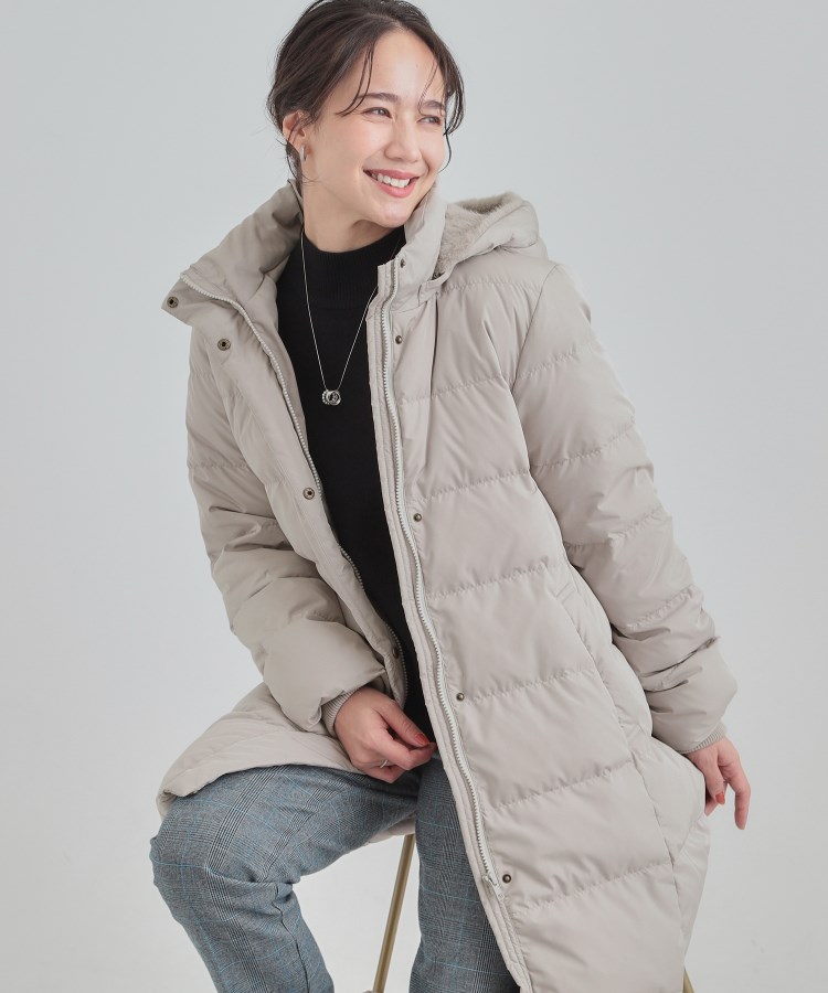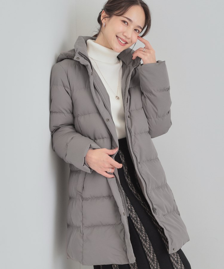 【デザイン】フード裏にフェイクファーをあしらった、上品な見え感のダウンジャケット。ウエスト周りがすっきり見えるように切り替えを入れたシルエットにこだわりました。お袖口は二重になっていて、内側にリブを使用しているので風を通しにくく、防寒対策もばっちり。ポケットの手の甲にあたる部分の裏地にはフリース素材を使用しているので、手を入れた瞬間暖かい、ちょっと嬉しい工夫が施されています。【スタイリング】ヒップがすっぽり隠れる長すぎない着丈なので、どんなボトムにも合わせやすいです。テーパードパンツと合わせるとすっきりとした印象。ワイドパンツ合わせやスカート合わせならより大人っぽい着こなしなど、様々な着こなしをお楽しみいただけます。【素材】CIRCRIC(サーキュリック)はサスティナブル素材のブランドですCIRCRICはワールドグループの商品に使われる、すべてのサスティナブル素材を包括するマテリアルのブランドです。表地は軽量で、少しハリのあるタフタ素材を使用しています。撥水加工が施されており、急な雨でもはじきやすくなっています。※この効果は永久的ではありませんダウン90%、フェザー10%のふんわりと軽いポーランドダウンを使用しております。(寒暖差の激しいポーランド産のダウンは、ダウンボールが大きく保温性があり、美しい白さが魅力です。)750フィルパワーで寒い日にも暖かく着られるダウンコートです。保温性も高くアウトドアやキャンプにもおすすめです。洗濯機洗いOKなのでお手入れも簡単。【ポーランドダックダウンとは】広々とした美しい大自然の中できれいな水と共に育てるため衛生面もよく、気候に極端な寒暖差があることで、より厚い羽毛の層を持ち合わせていることが特徴です。【仕様】・ポケット数:横×2・裏地あり※照明の関係により、実際よりも色味が違って見える場合があります。また、パソコン・スマートフォンなどの環境により、若干製品と画像のカラーが異なる場合もございます。