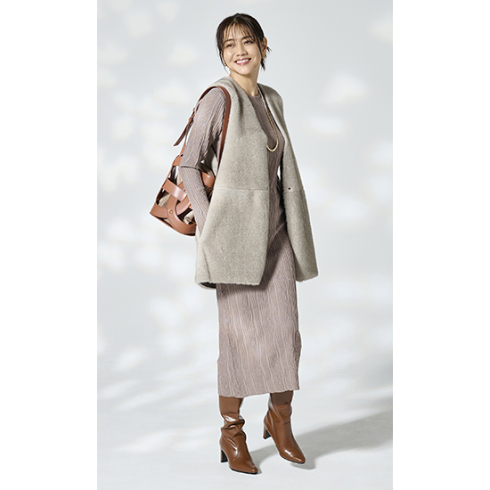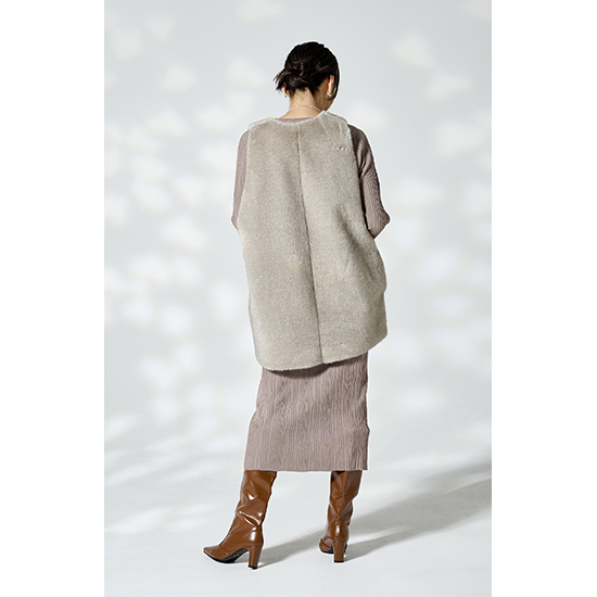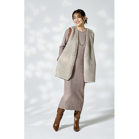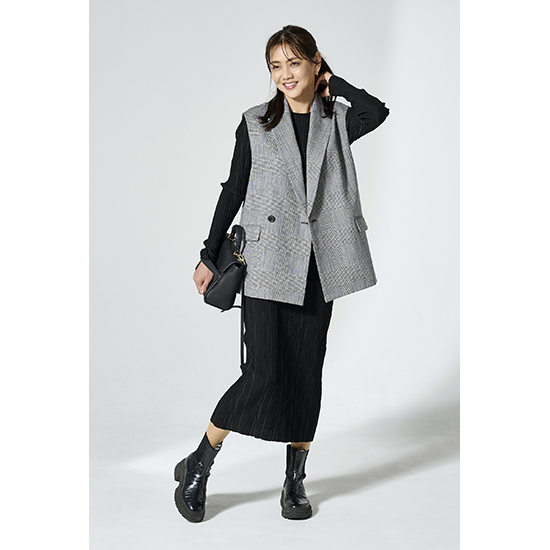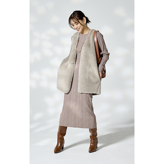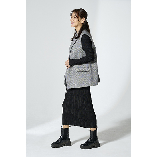 シンプルなIラインシルエットが、ジレなどのアウターとの相性もピッタリで、コーディネートのしやすいアイテムです。