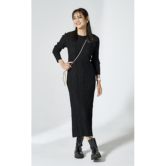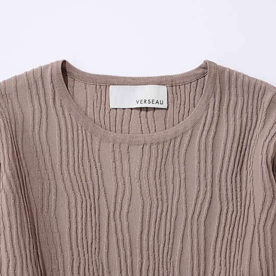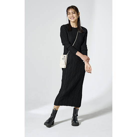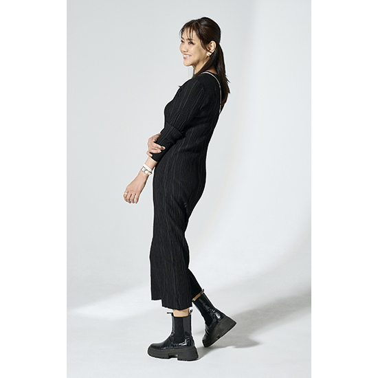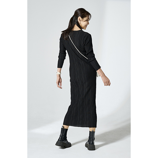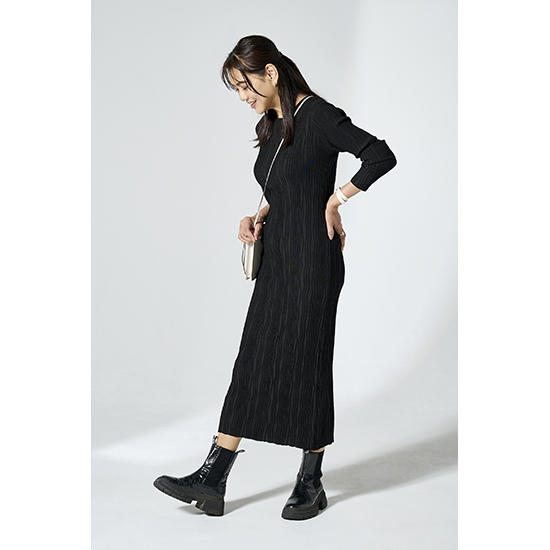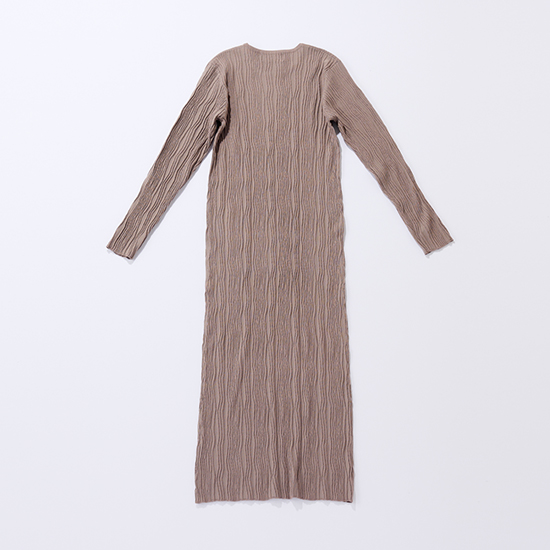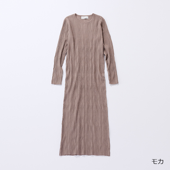 ピンタックのようなディテールをニットの編み地で再現した、デザイン性の高いニットワンピースです。