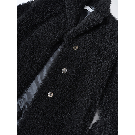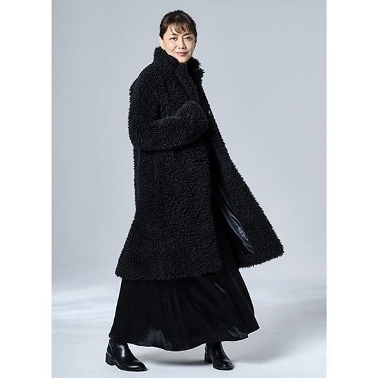 光沢のあるクルクル巻き毛のチベットラムのコートは軽くて温か。